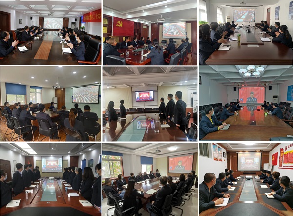 大会开始前,公司两级理论学习中心组成员和公司分公司机关党支部书记及党员干部职工代表等,统一着装,党员佩戴党员徽章,在本单位会议室整齐就座,怀着崇敬的心情等待着。